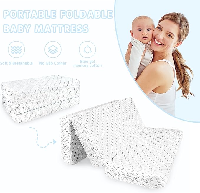 - Lightweight and Portable: The three-fold lightweight design allows you to easily fold and carry this travel pack n play mattress. This portable mattress for pack n play is not only suitable for indoor use but also convenient for travel, ensuring your baby can rest and play comfortably anytime, anywhere.