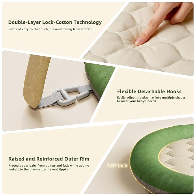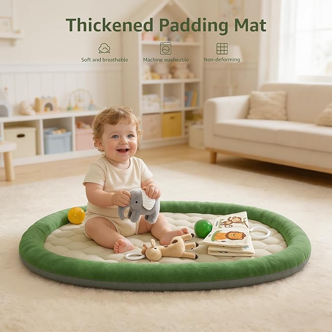 - Perfect Gift & Decoration - This baby activity mat features a light green and beige color scheme, accented with leaf and animal charms. Its minimalist yet warm design seamlessly integrates into any home decor. With its exquisite packaging and must-have features for newborns, the baby playmat is a perfect choice for a baby shower gift, photoshoot prop and nursery decor