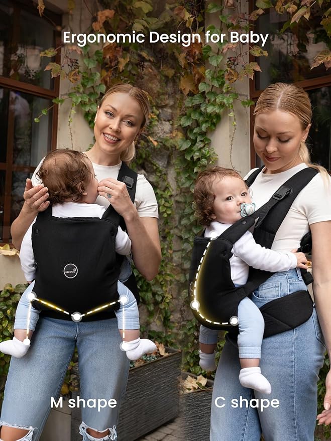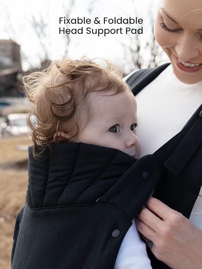 - [Grows With Your Baby7–44 lbs)] This baby carrier grows with your little one from newborn to toddler—no infant insert required. Its foldable head support keeps your baby snug and secure at every stage, while its ergonomic design fosters closeness and enhances the bond between you two.