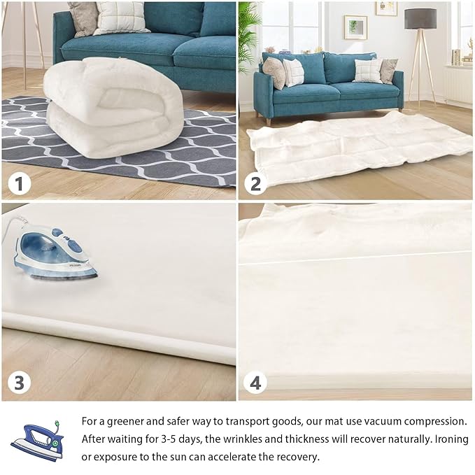 - 🌟HOW TO CARE FOR YOUR MAT:When you open the package,it may be wrinkled,very flat and inelastic.Don’t fret - this is normal! As long as it is left for 3-5 days, the mat will naturally regain its thickness and elasticity. we recommend steaming or ironing it to speed up recovery. After you have completed the steaming/ironing, your thick floor padded mat should rebound and be ready to use!