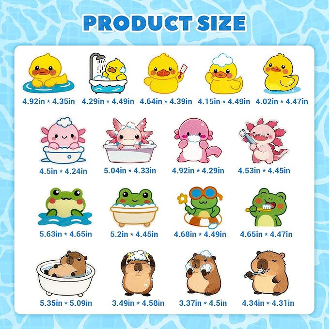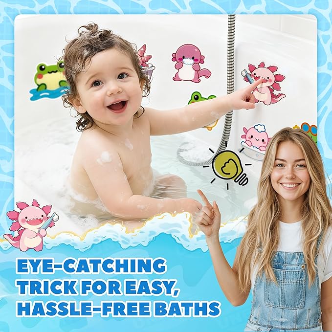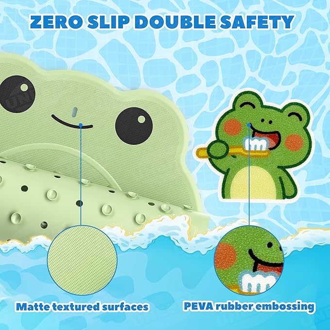 - 【Fun Designs that Spark Joy at Bath Time】Double the fun to help your child fall in love with bath time! The adorable frog-shaped shower mat invites your baby to sit securely, while the vibrant, colorful anti slip shower stickers create an engaging scene inside the tub. This stimulating environment turns a routine task into an exciting activity, making your little one look forward to getting clean and transforming the entire tub into their personal playground.