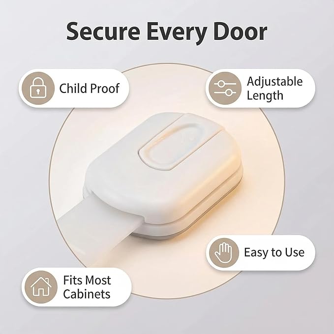 - Baby Proofing Cabinet Locks:The set comes with 6 child safety strap locks, designed to safeguard babies and pets from potential hazards during their home adventures.