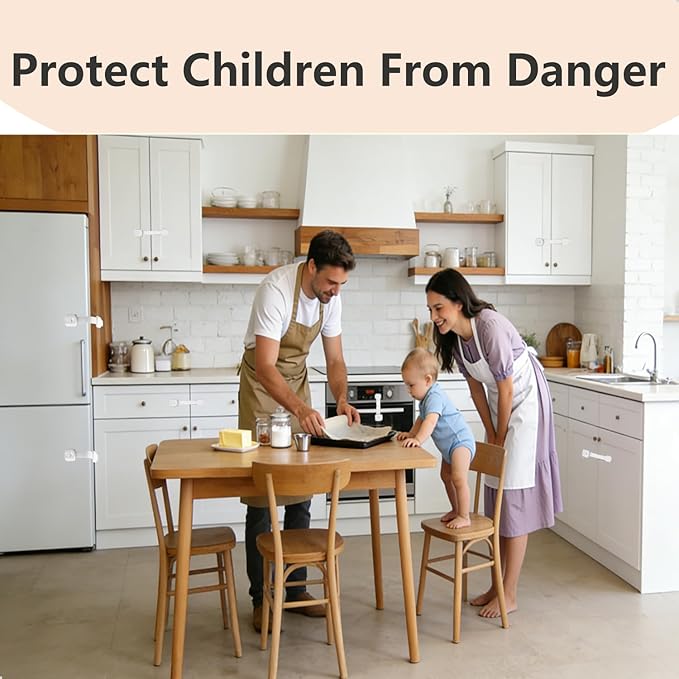 - Adjustable Design, Universal for Multi-Scenes:The lock body length is adjustable. It works not only for cabinets and drawers but also for toilet seats, refrigerators, microwaves, and ovens—one set solves all home protection needs.
