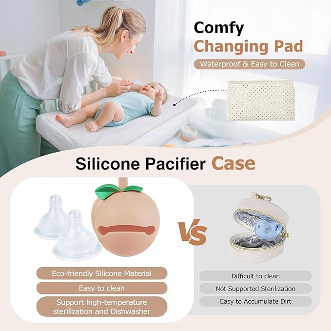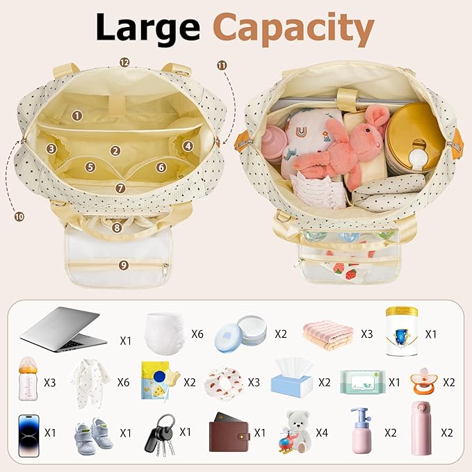 Diaper Bag Tote, Baby Diaper Tote Bags Crossbody Hospital Bag Travel Large Mommy Bag, with Silicone Pacifier Case