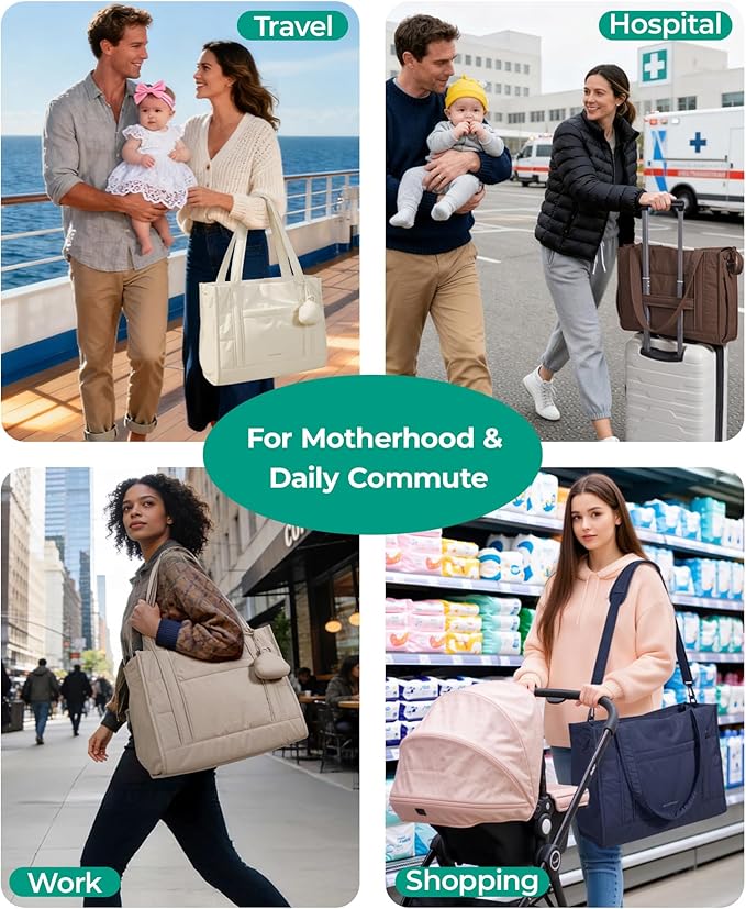 BAGSMART Diaper Bag Tote Puffer, Hospital Bag for Labor Delivery with Pacifier Case, Lightweight Baby Bag for Travel, Work | Multifunctional, Insulated Pockets, Water Resistance